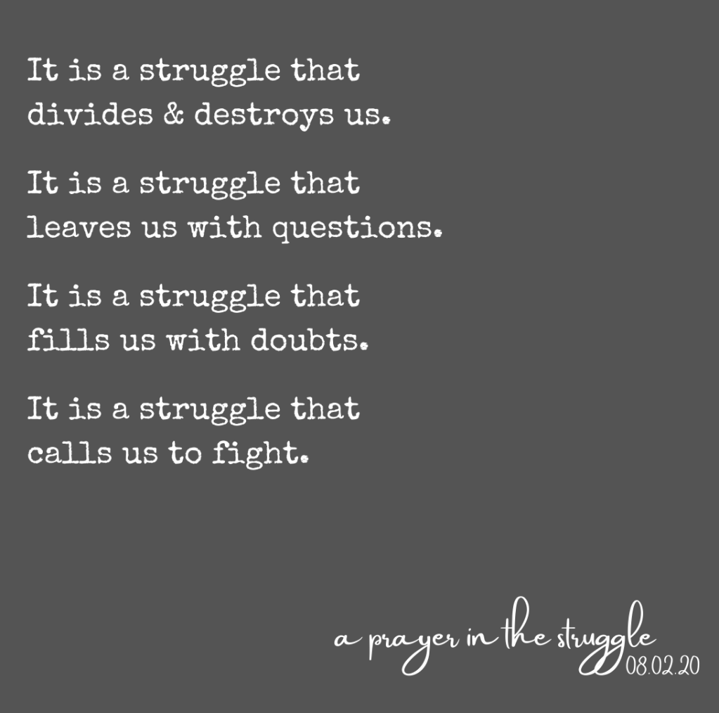 Lord, long before we ever heard, or paid attention to, these, you already knew the names of Ahmaud Arbery, Michael Brown, Terence Crutcher, Eric Garner, Oscar Grant, Freddie Gray, Botham Jean, Atatiana Jefferson, Bettie Jones, Trayvon Martin, Laquan McDonald, Tamir Rice, Breonna Taylor, Dominique White. We fail your call to us as we forget our fellow humans beings created by you, these who have died because of color – senselessly and unjustly killed. After our outrage, or sympathy, dissipates and our entitled excuses do their job of removing our guilt and refocusing the blame on these victims, we forget these names. You, O God, never forget these you lovingly created; these you know by name, and even more by heart. You share in the tears of those that loved them and, are now, facing an earthly eternity of grief in their absence.