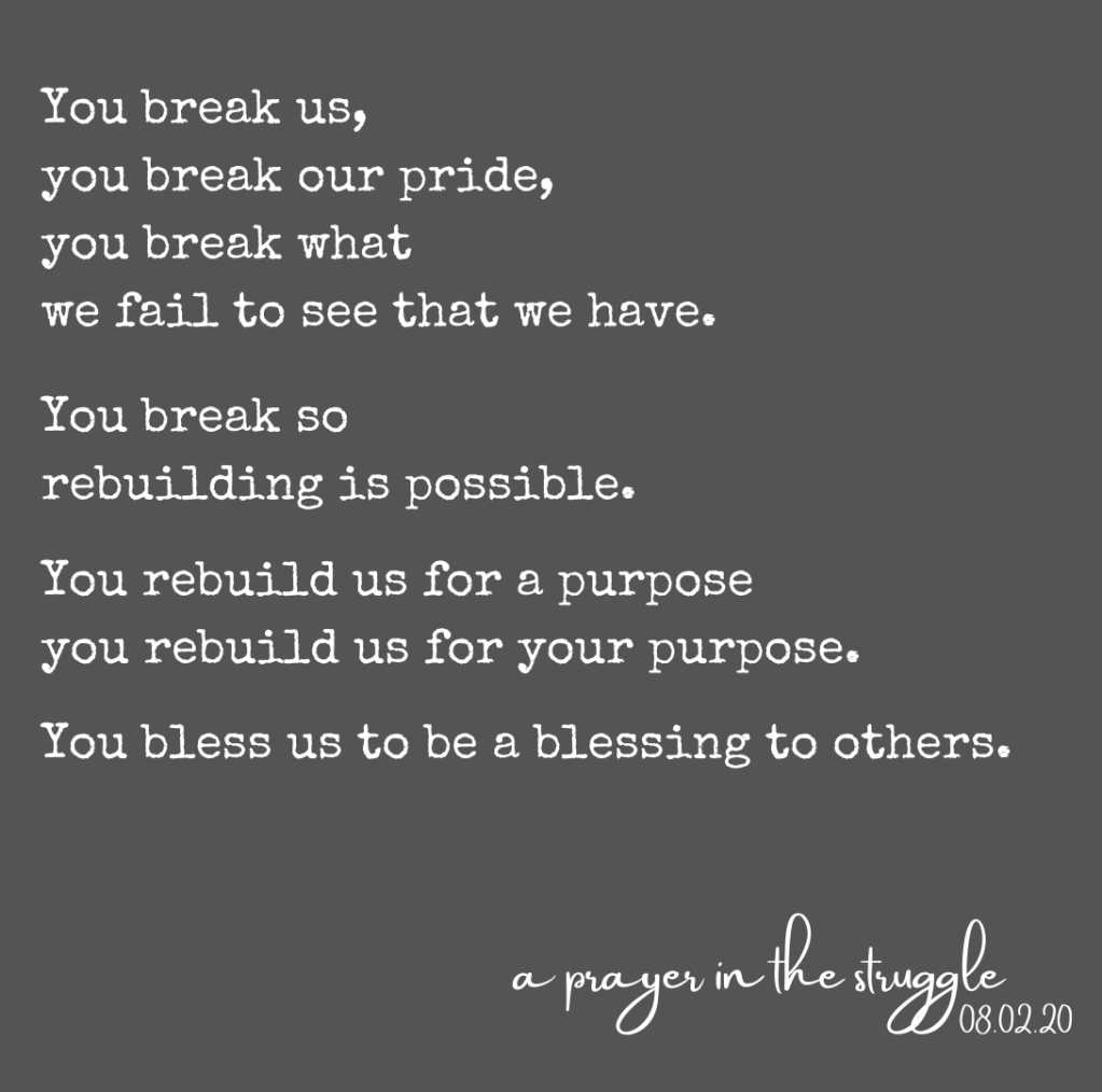 A wrestling match can bring us to transformation if we hold on. A struggle can show us what we have instead of what we do not have. What is your struggle, what is God bringing into your vision?